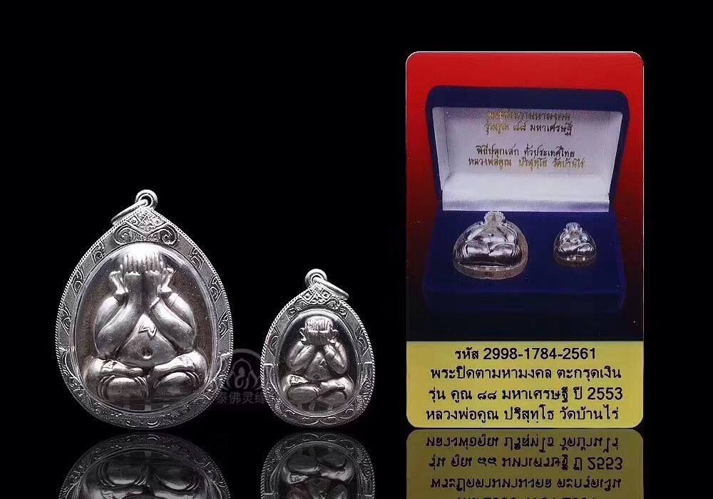佛历2553年泰国国宝级财神圣僧龙婆坤师傅88岁生日版的,龙婆坤88大寿必达组合套,龙婆坤师傅88岁大寿时他的弟子们觉得这是值得庆贺的日子,应该办一场大法会,便向龙婆坤师傅提出了八八大发这款佛牌,这期圣物当时是为了庆祝龙婆坤高僧88岁大寿特意联合其他88位在世高僧一起加持开光的,也算是比较有意义的一期必打。