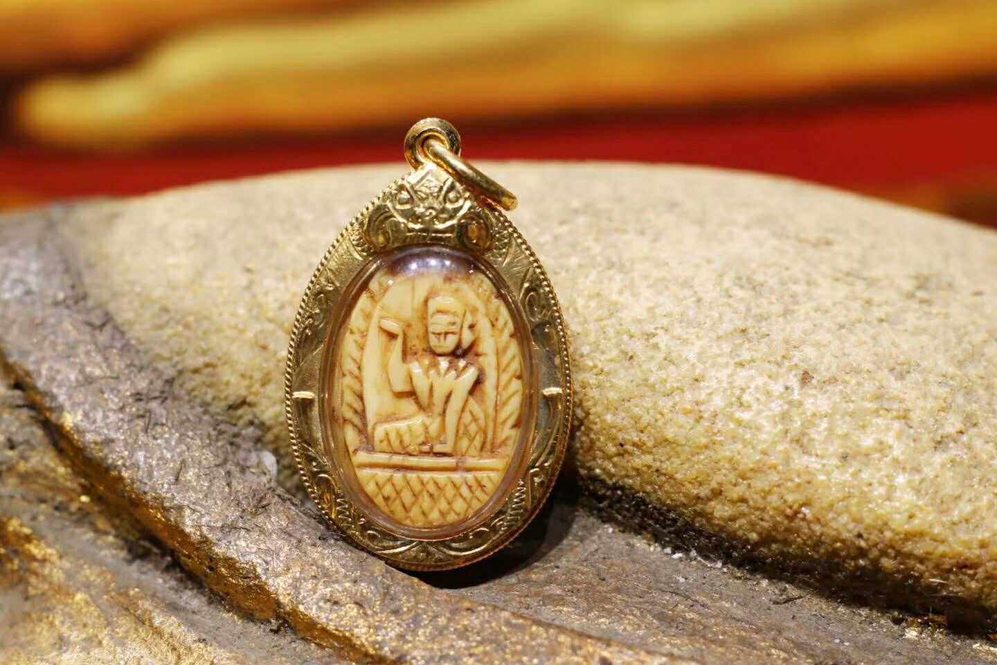 用自然死亡大象的牙齿雕刻制作,因为牙质的纹路不同且雕刻的下刀走位不一样,所以这样的圣物基本每尊品相都有不同,市场的仿品也很多,收藏时需特别注意。师傅的督造佛牌的特点特别适合开店、做生意的朋友选择。龙婆登是泰国佛教九大圣僧之一,他的招财女神和自身像都是近现代顶级,可以说师傅的圣物没有什么弱项,追捧度虽然有高低,但是市值都不次,属于佛牌收藏界绝对的主流之选。就连全泰各大权威协会的重要人士都是会佩戴龙婆登的佛牌,可见师傅圣物在收藏界的地位如何了。
