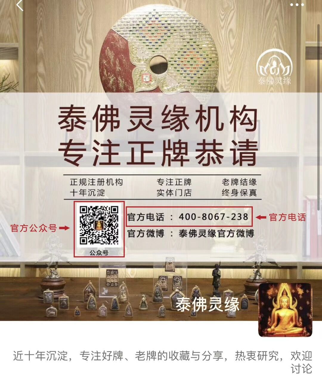本着对每一位朋友负责的初心,泰佛灵缘机构成立至今,从未发展过任何形式的代理和授权行为,官方微信均可通过“泰佛灵缘”公众账号查询到,请广大朋友知悉!